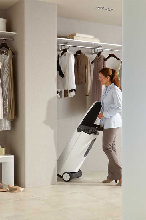 Grazie al sistema brevettato* Fashion Master si sblocca e si apre in due semplici mosse, arrestandosi all'altezza desiderata. L’asse da stiro è più larga ed è inoltre dotata di un comodo vano integrato in cui riporre il ferro e gli accessori e di due grandi ruote salva-pavimento che consentono di trasportarlo ovunque in maniera comoda e veloce.